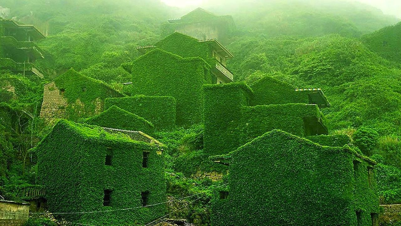 Shengshan Adası’ndaki bu köyde zaman adeta durmuş gibi. Çin’in Zhejiang eyaletinin doğusundaki Shengsi Adaları’nı oluşturan neredeyse 400 küçük adadan biri, önceleri gelişen bir balıkçılık merkezi iken uzun zaman önce terk edilmiş ve doğal olarak bitkiler ve asmalar, bakım yapılmayan binaları sararak adeta yeşil evler ormanına dönüştürmüş.